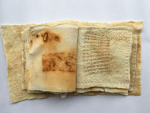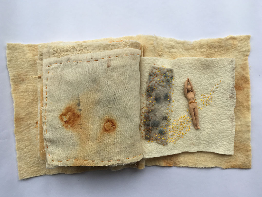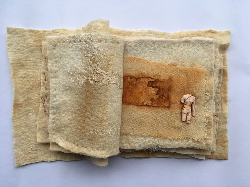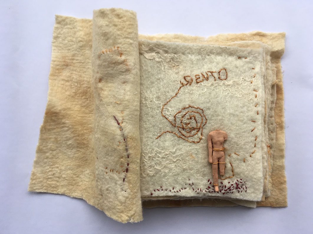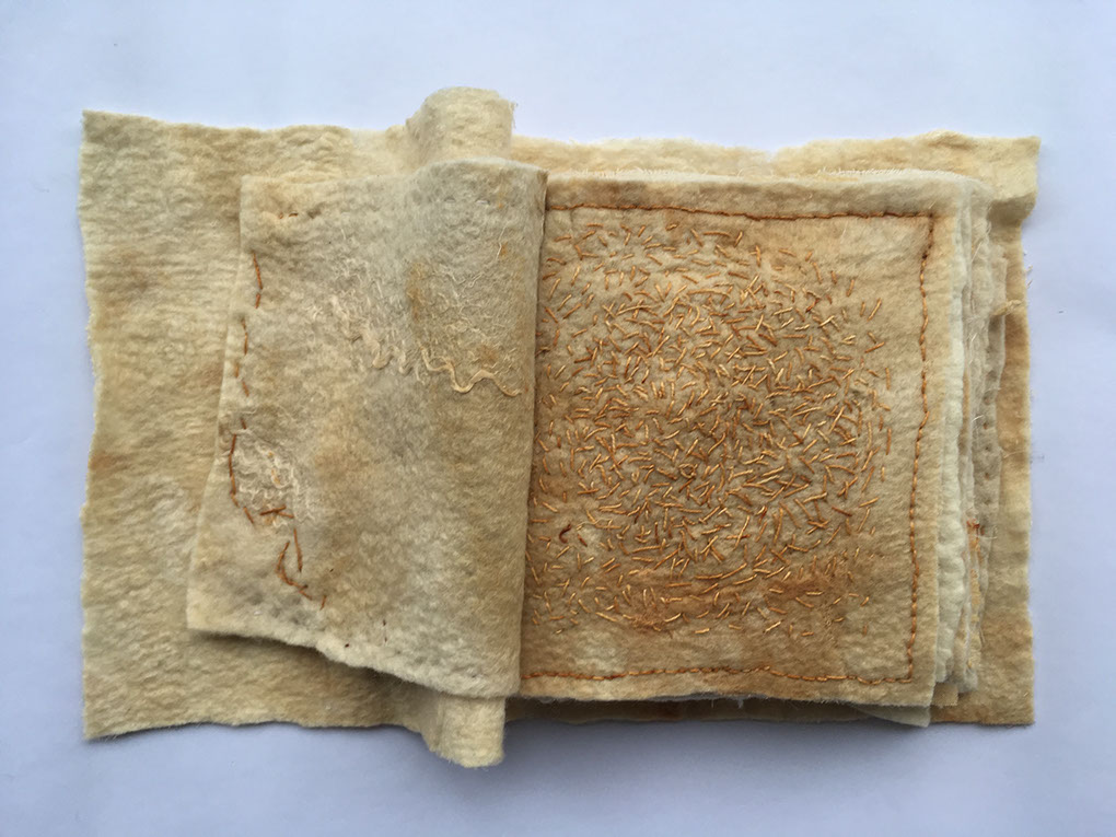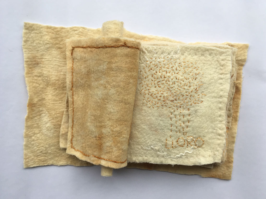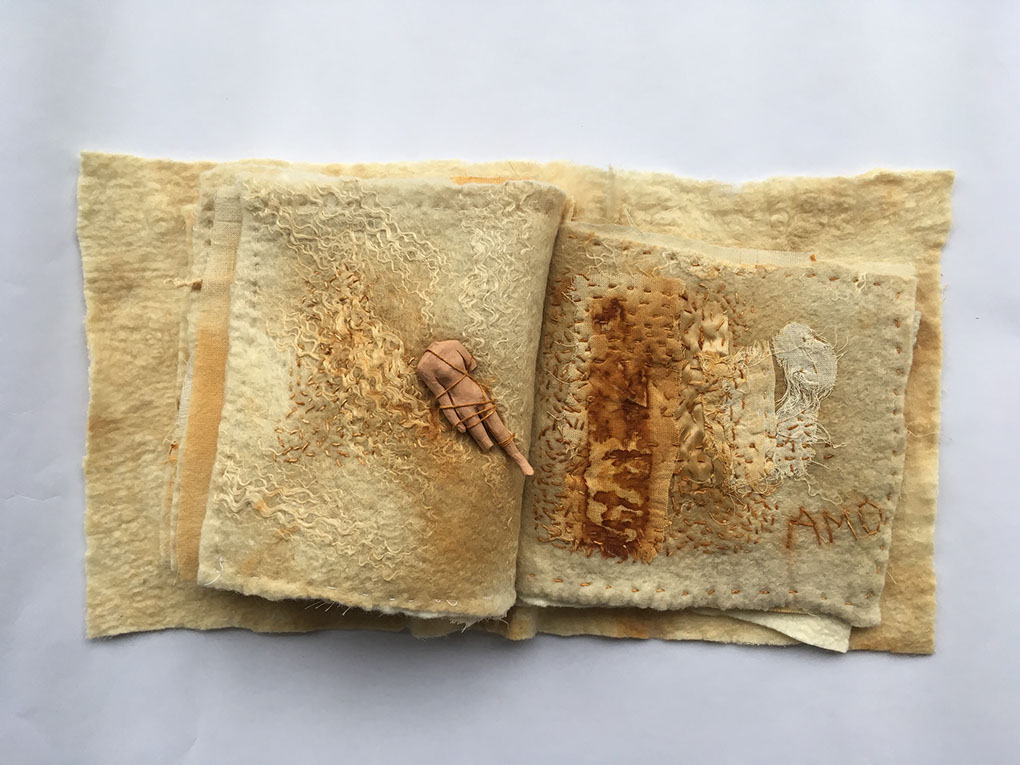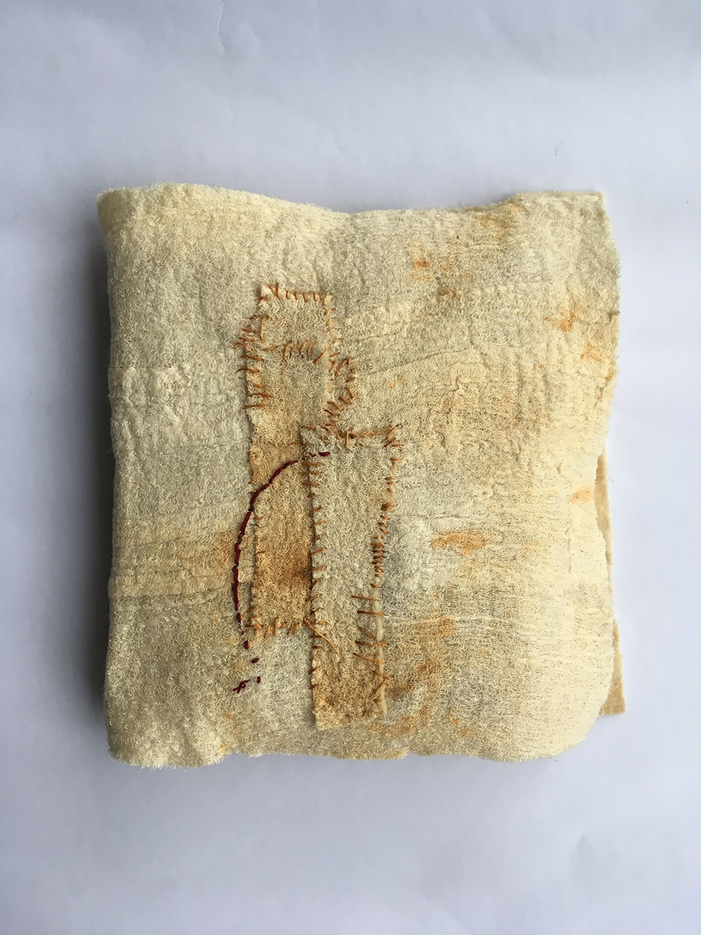 Técnica:Fieltro húmedo, oxidado, bordado, encolado.