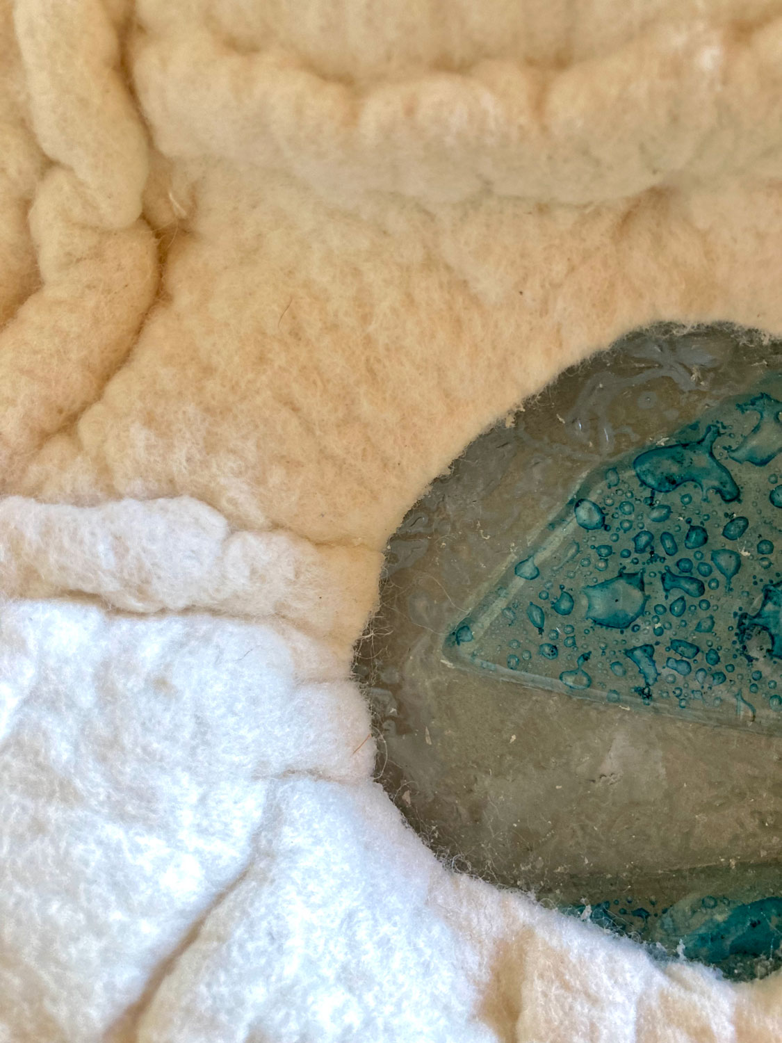 Técnica: Ensamblaje: pieza de vitrofusión, fieltro húmedo